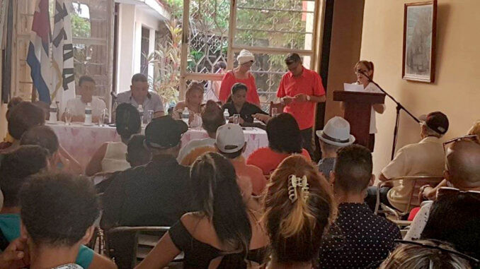 Los miembros de la filial granmense de la Asociación Cubana de Artesanos Artistas, ACAA, debaten este viernes, en la ciudad de Bayamo, el trabajo realizado en los últimos ocho años.